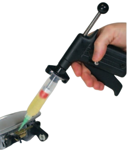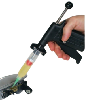 למינון מדויק ועבודה ארגונומית נוחה נדרש להשתמש באקדחי מינון בעת הזרקת חומרי הדבקה ואיטום. אקדח ידני פשוט משמש למינון חומרים חד רכיביים המסופקים בתרמילים בנפח 300 מ”ל. לחיצה על הדק האקדח דוחפת בוכנה באופן ידני והחומר מוזרק מפתחו הקדמי של התרמיל. המזרק מותקן באקדח, לחיצה על הדק האקדח דוחפת שתי בוכנות במקביל, שני רכיבי החומר מוזרקים מהפתח הקדמי ומתערבלים זה בזה בתוך מערבל סטטי.